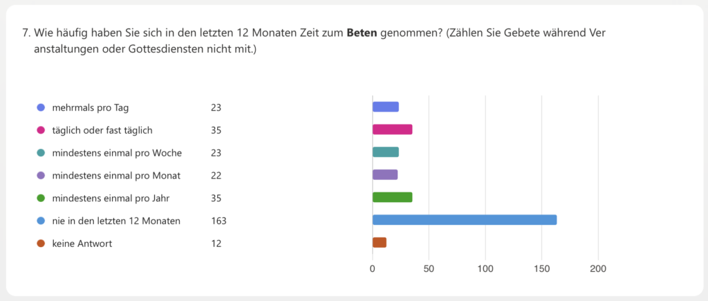 Von den 313 Teilnehmer*innen der Umfrage haben 163 in den letzten 12 Monaten nicht gebetet.